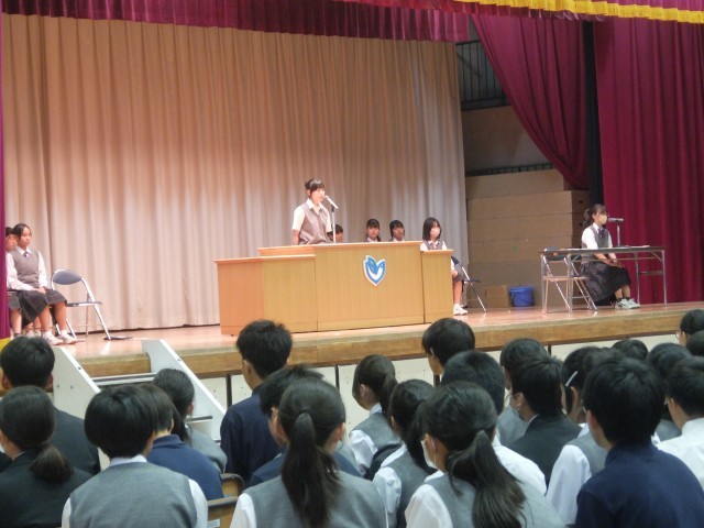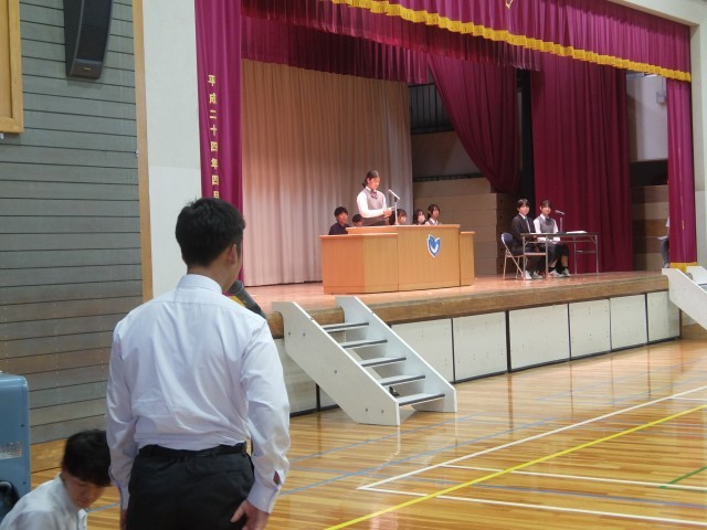 昨日、生徒総会が行われました。生徒会本部と各専門委員会の前期の活動内容が承認されました。生徒会役員と各専門委員の皆さんは自分たちで決めた活動をやり切ってほしいと思います。