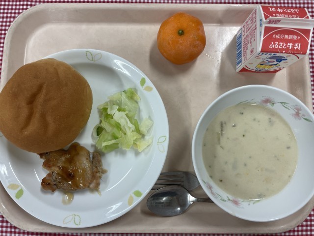 今日は、照り焼きチキンとボイル野菜をパンにはさんでバーガーにして食べました。照り焼きチキンにはあんかけがかかり、とてもよく食べてくれました。冷凍みかんにぴったりの天気で、今日もおかわりジャンケンが白熱していました。