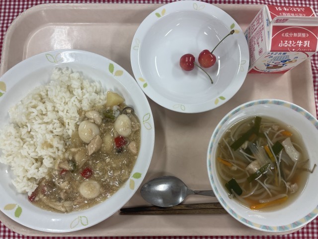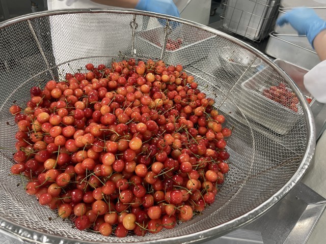 デザートのさくらんぼは、山形県産の佐藤錦です。甘みも十分で旬を味わいました。