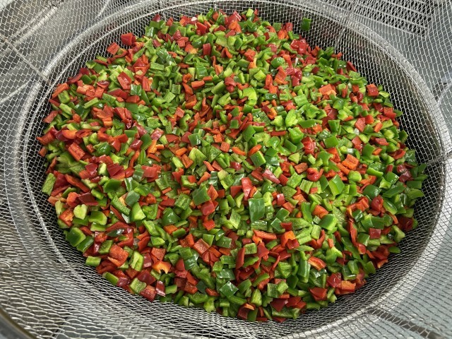 ガパオライスには、鮮やかな赤ピーマンや黄ピーマンが入っています。苦味が出にくいように、ボイルしてから使用しました。味付けにはオイスターソースやナンプラーを使って本場の味を目指しました。