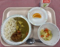 献立は、・しょうゆラーメン・じゃがいものカレーサモサ・ラー白菜・牛乳です。リクエ...