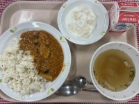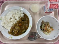 献立は、・夏野菜カレー・BBQチキンサラダ・ホワイトゼリー・牛乳です。1学期の給...