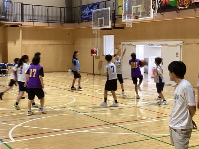 3年生が中心となって活動してた部活動が1,2年生による新体制に移りました。夏休みに入り,どの運動部でも練習試合が盛んに組まれています。今日は本校体育館アリーナに文京区立第八中学校を招いてバスケットボール部の練習試合が行われました。新人大会に向けてより良いチームとなるよう切磋琢磨しています。