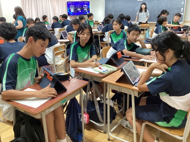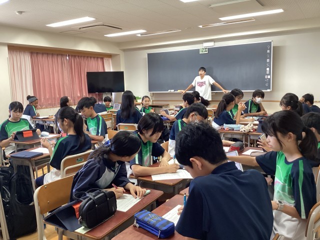 1学年では、河口湖移動教室に向けて、現地について調べた事を班で発表しクイズを出題しました。