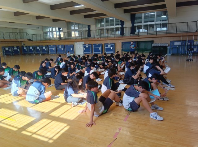 明日出発の修学旅行、最終確認の学年集会が開かれました。みんなのワクワク感が伝わってきます。体調を崩さないようくれぐれも気を付けて、明日は元気に出発しましょう!