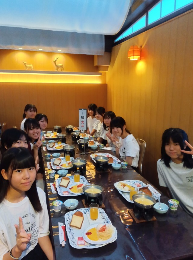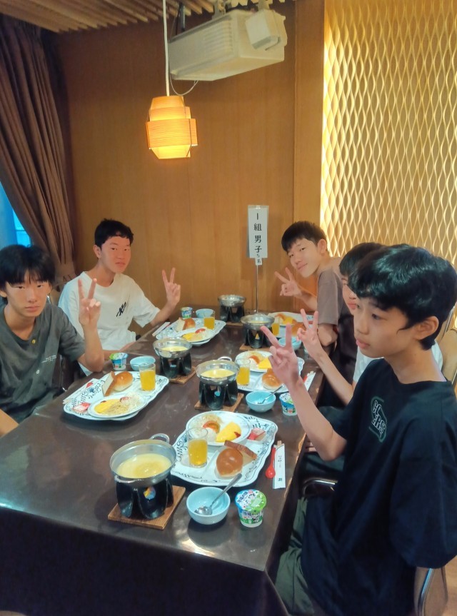 朝食です。モリモリ食べて、今日も一日頑張ろう!(昨夜の夕食風景は3組でした。今日こそ1組の様子をお届けします!)