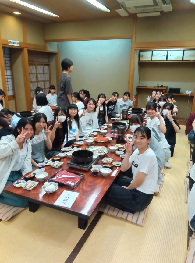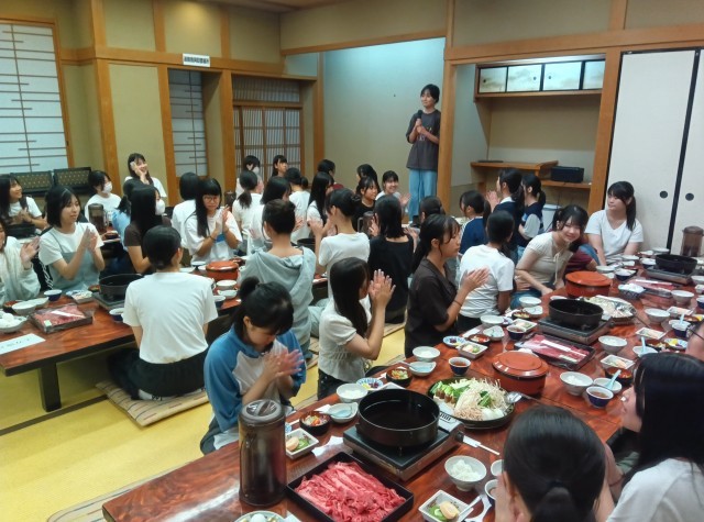 今日の夕食はまたまた肉づくしのすき焼きです!食事係の号令で「いただきまーす!」