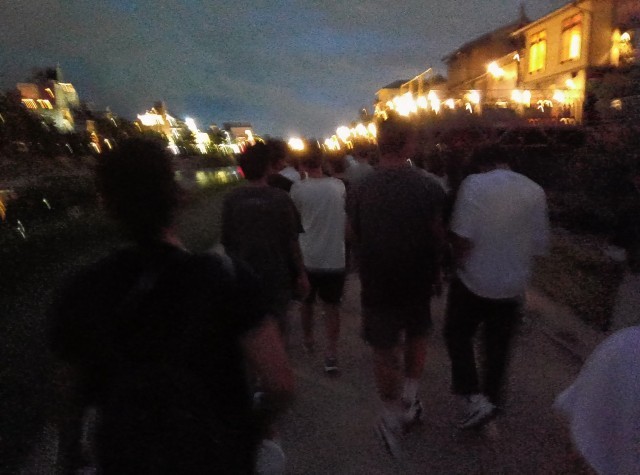 夕食後、座禅体験をするために建長寺に向かいます。鴨川沿いを歩きます。