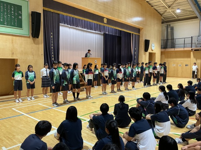 2学期中間考査2日目。国語・社会の2教科、どの学年も全力でテストに臨んでいました。終了後はアリーナにて、明日開催の区陸上競技大会の壮行会が行われました。深沢中の代表選手が勢揃いし、全校生徒の激励の拍手が送られていました。選手の皆さん、明日はベストを尽くしてきてください。