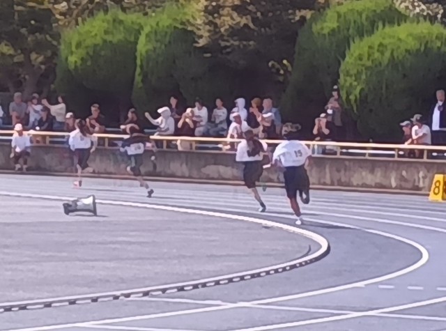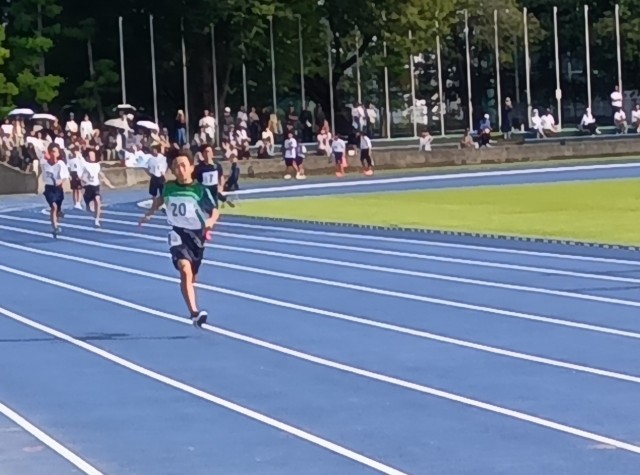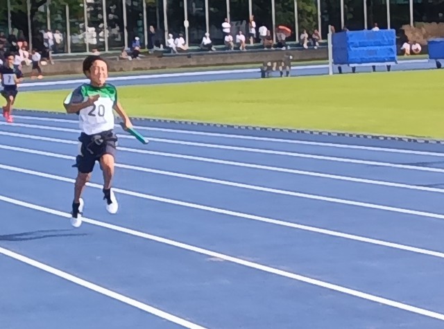 リレー競技が始まりました。1年生、初めてのリレー競技ですが、頑張っています!