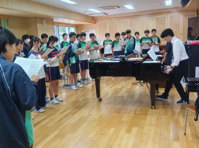 合唱コンクールに向けて、合唱を専門に学んでいる大学生の方をお招きして、3年生対象に音楽の授業でご指導いただきました。ほんの少しのアドバイスで、あきらかに歌声が変わりました。これから約2週間、どんな合唱が創り上げられるのか、楽しみですね!