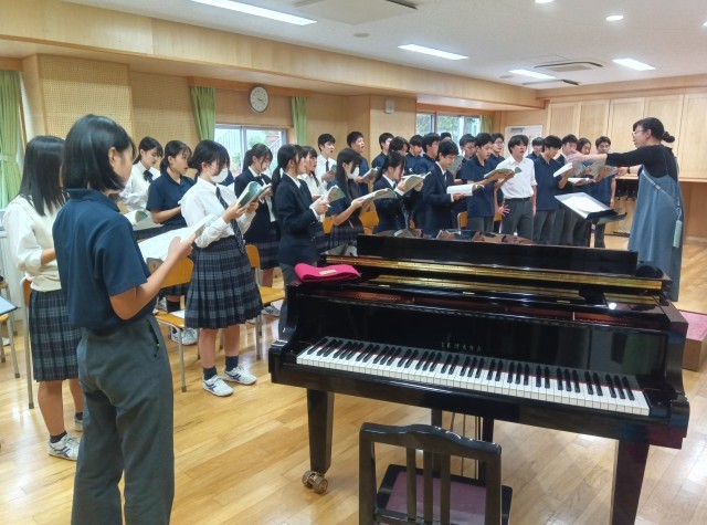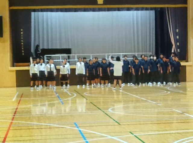 本日の放課後合唱練習の様子です。体育館や格技室、音楽室、教室のどこに割り当てられているかで、練習方法も゙違ってきます。限られた時間の中でみんな工夫しながら練習しています。