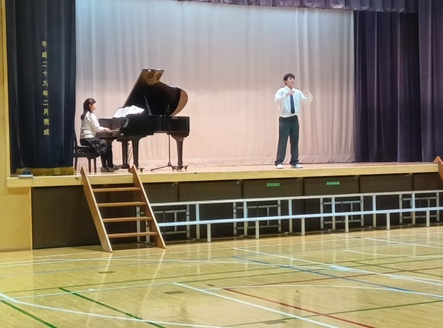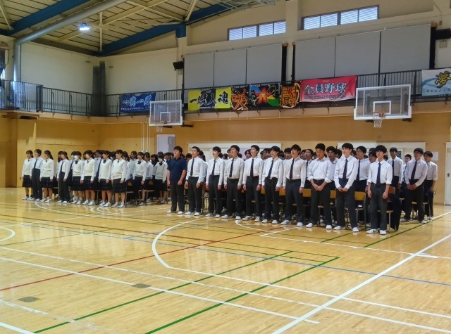 明後日の合唱コンクールを前に、3年生がリハーサルを行っています。まずは学年合唱です。3年生らしい力強い歌声が響きます。