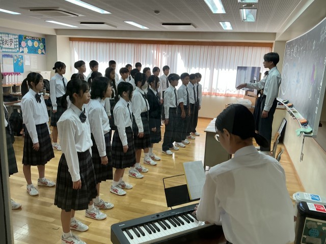 間も無く合唱コンクールが始まります。各学級は最後の大詰めをしています。自分達の目指す完成形により近づくために一体となって練習しています。