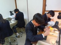 緑の休暇村に着きました。オリエンテーリングの説明を受けています。このあと班ごとに出発します。