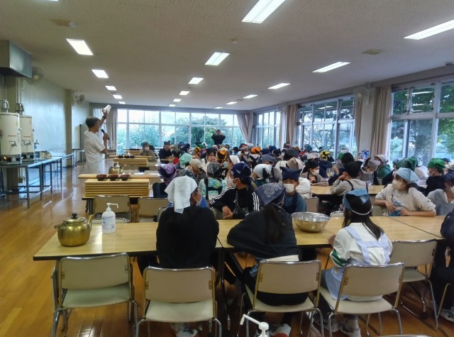 学園に戻ってきました。午前中は薄曇りでしたが、今は雲ひとつない天気です。これから手打ちうどん打ち体験が始まります。