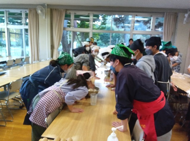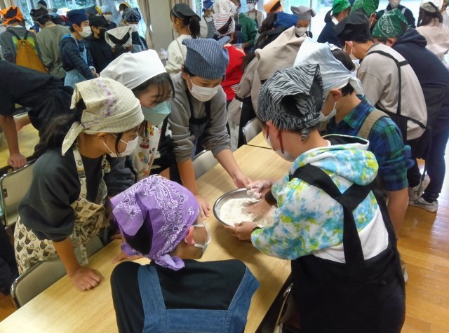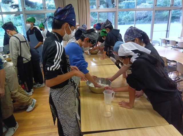 粉に少しずつ塩水を入れながら、ひたすらこねます。
