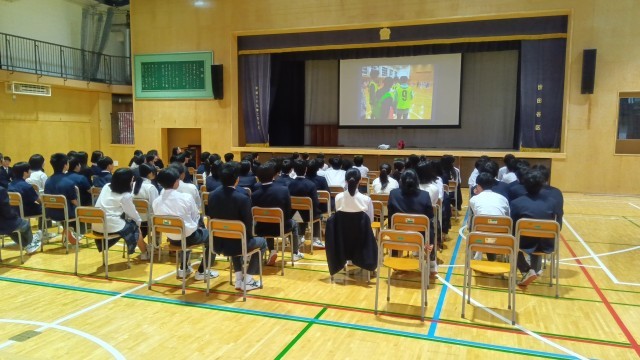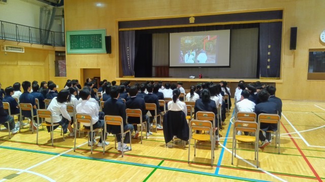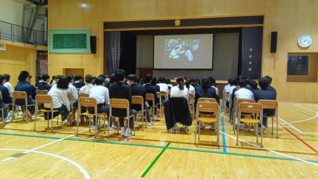 5時間目、1年生はアリーナに集合しました。