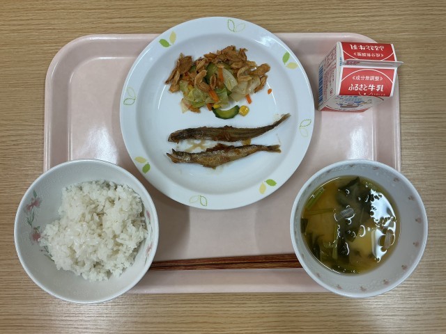 今日の主菜は「ししゃもの南蛮漬け」でした。ししゃもには、骨や歯を丈夫にするカルシウムやビタミンD、筋肉の材料となるタンパク質、脳の活性化に役立つDHA・EPA、貧血予防に重要な鉄分など、多くの栄養素が豊富に含まれています。