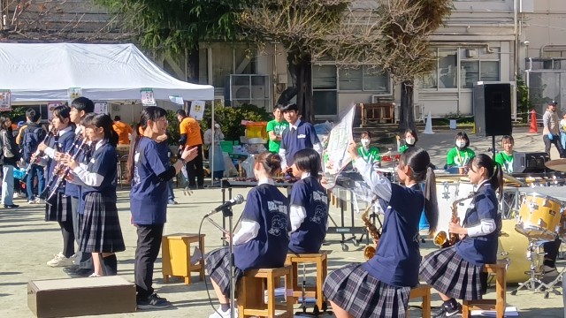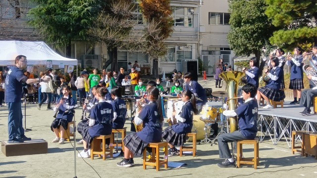 ぎんなんまつりで、吹奏楽部が演奏をしてくれました。