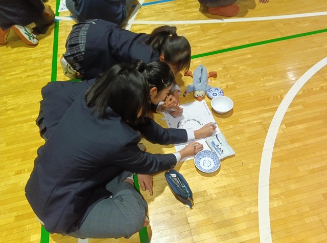1年生は講師を招き、「和食器講話」を行いました。実際に和食器を目の前にして、和食器に描かれた水や季節のうつろい、風土などについて学んでいきます。