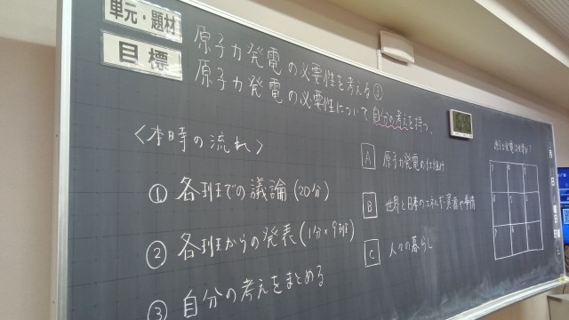 原子力発電の必要性を考える授業内容です。