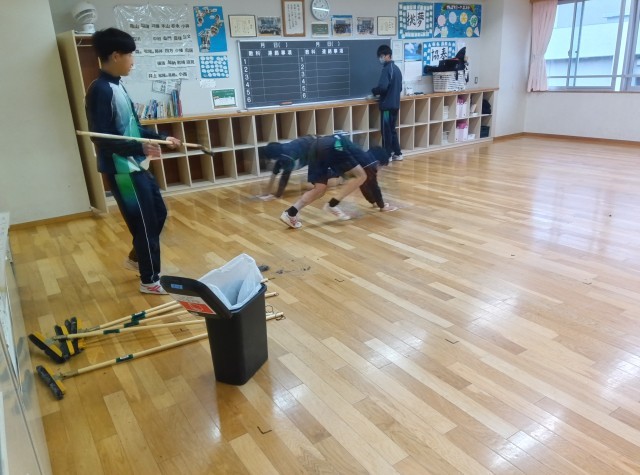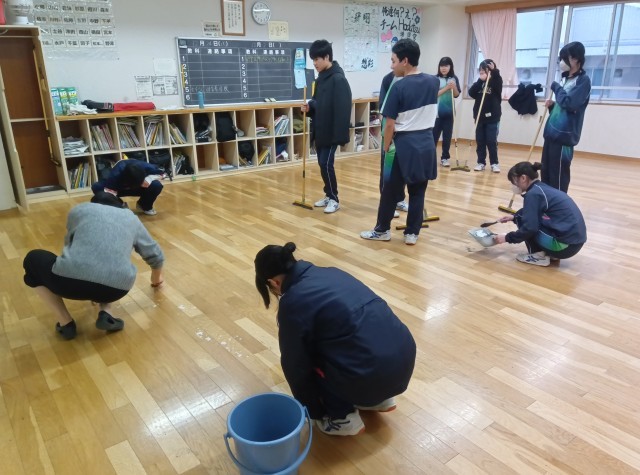 学期末、大掃除が始まりました。教室の汚れを丁寧に落としていきます!
