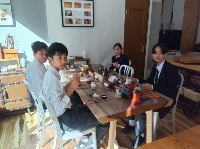ただいま、レザークラフト体験中。どんな作品が仕上がるかな!?