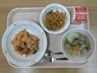 今日の献立表メニューには、クリームコーンスープとなっていましたが、材料の都合で「ポトフ」に変更させていただきました。クリームコーンスープは、3月の献立に入れますので何卒よろしくお願いいたします。