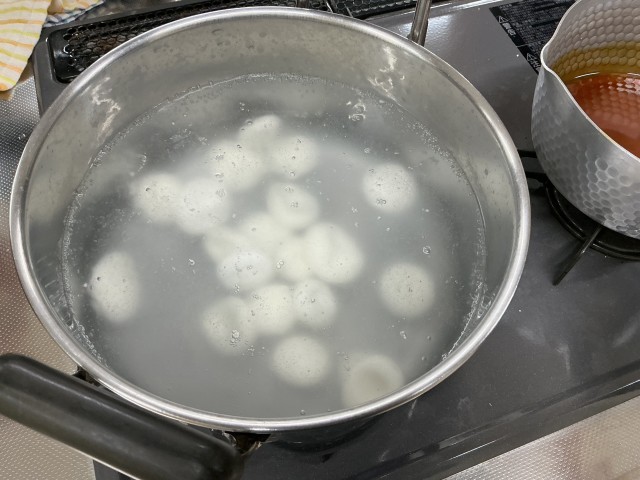 本日も中学2年生がみたらし団子の作成を行なっています。