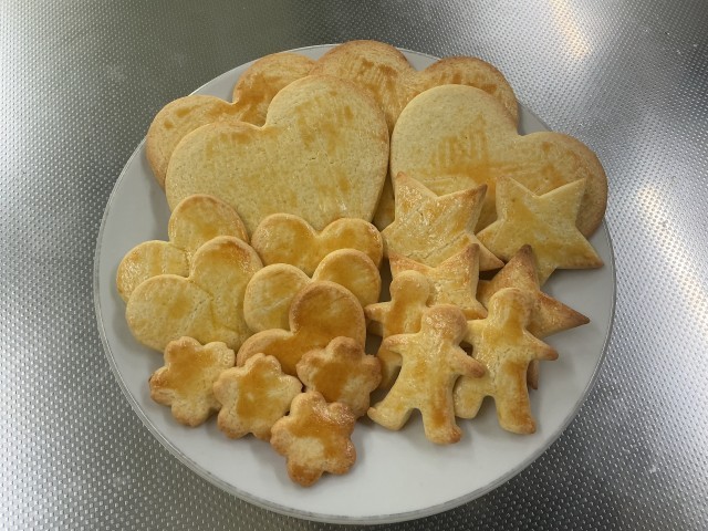 家からクッキー型を持参し、いろいろな形のクッキーを作りました。