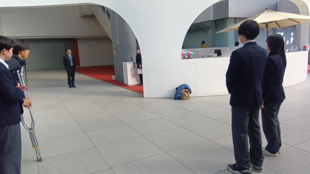 TGGでの貴重な体験を終えて、館長さんにお礼の言葉を学年代表の生徒が伝えました。さあ、いよいよお楽しみのもんじゃストリートへ!