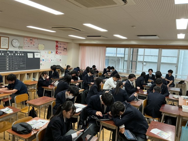 1時間目は修学旅行の事後学習の一環として、Photoコンテストを行うための写真選びをしています。