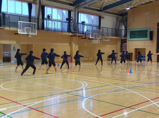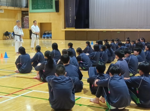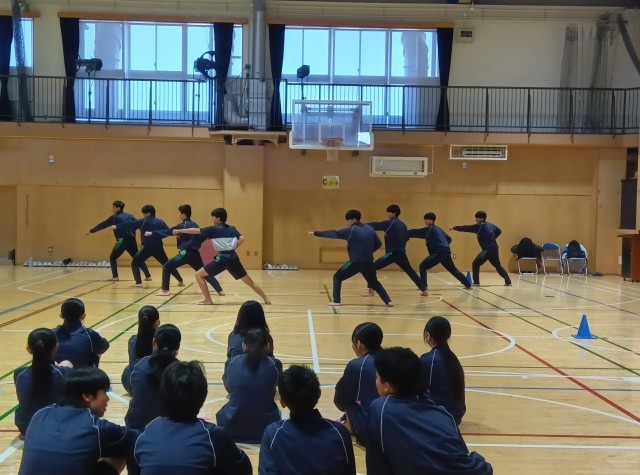 空手の授業が始まって6時間、生徒たちは、始めたときとは比べものにならないくらい、切れのある動きと気合のこもった声を出せるようになりました。ご指導いただいた先生方、本当にありがとうございました!