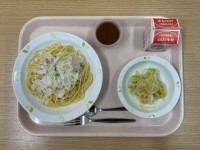 今日の献立・・・じゃこと青じそのご飯、鶏肉の照り焼き、もやしとわかめのサラダ、いなか汁、牛乳