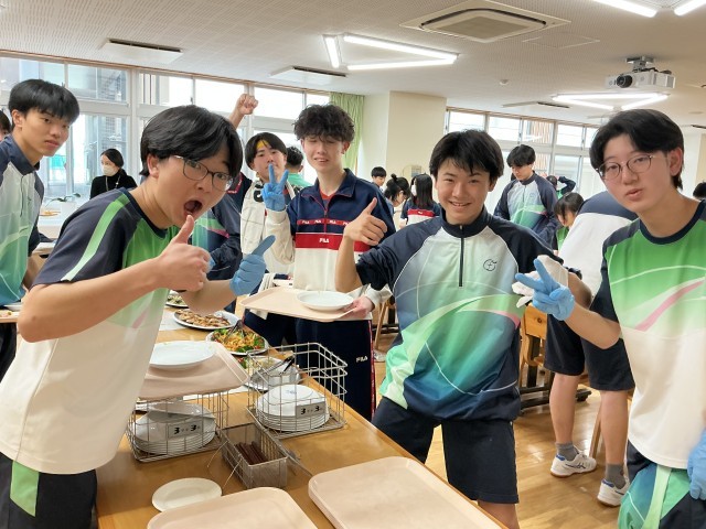 今日の主菜は、鶏肉の照り焼きです。使った肉の部位は高タンパク質・低脂質で消化吸収にすぐれたヘルシーな「むね肉」です。「むね肉」は、疲労回復成分「イミダゾールペプチド」が豊富に含まれるため、疲労軽減に役立つ働きがあります。2枚目と3枚目の写真は、3年3組さんの卒業祝いスペシャル給食の写真です。今日で最後のスペシャル給食!!子どもたちも『いつも』と違う給食を喜んで✌️で答えてくれました。子どもたちの笑顔『ステキ』ですね。