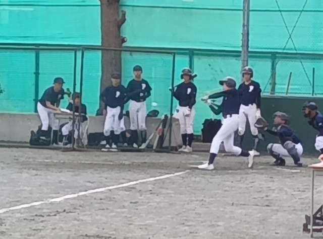 春休み中も、部活動に参加する生徒は張り切って練習に参加しています。校庭では野球部が練習試合をしていました。打って、走って、投げて、声を出して頑張っています!