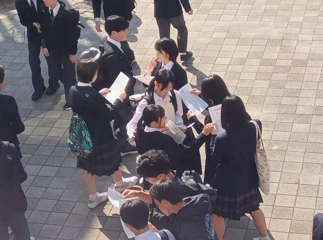 1学期始業式の朝、3年生クラス替え表配布の様子です。これからこの仲間たちとどんな一年を過ごしていくのか、楽しみですね!