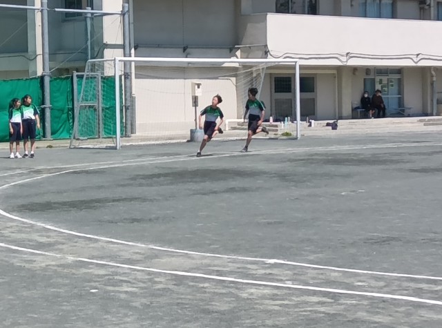 2年生は、保健体育の時間に100m走にチャレンジしています。さあ、昨年度より記録は伸びているかな!?