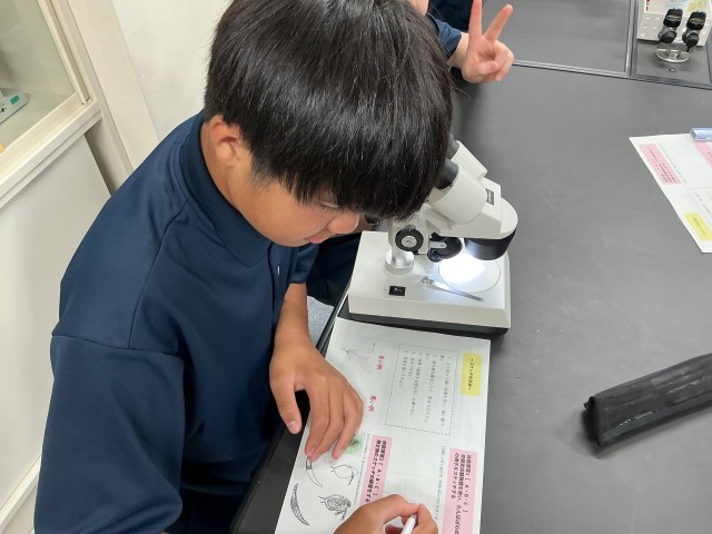生徒は熱心に双眼実体顕微鏡を使い、観察を行っていました。