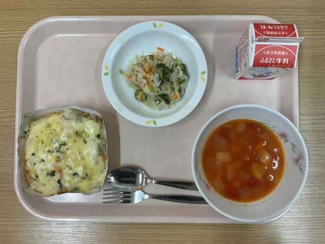 今日の献立・・・ドリア、ツナサラダ、ミネストローネ、牛乳