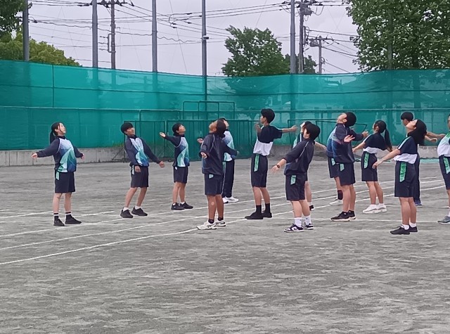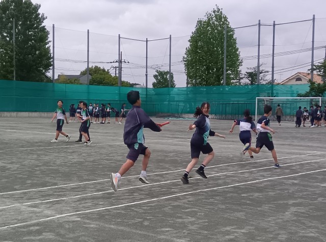 体育祭に向けての練習が始まっています。今日は、入場行進、ラジオ体操、リレーのバトンパスの練習を行いました。どの場面ても、体育祭実行委員が学年の生徒たちをリードして練習を進めていました。「生徒が主役」の深沢中。いいですね!