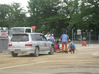 午後から雨の予報で天気が心配でしたが、途中パラっと降った程度で、予定通り実施できました。スタントマンの方々の事故の再現の演技は迫力があり、事故の怖さを実感させてくれました。事故を未然に防ぐために、今日学んだことをしっかり普段の生活の中で実践していきましょう。