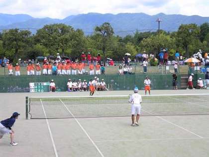 10日の予定が、台風の影響で11日に延期されて行われました。東京とは違い、甲府盆地は朝からの日差しで、最高気温は34度(コート上は更に高い温度だったことでしょう)の猛暑の中、競技が行われました。