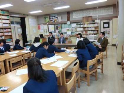 雪がしんしんと降る土曜授業の後の放課後に、2年生を対象とした「第1回未来夢発見フォーラム」が行われました。内容は、深沢中の卒業生に来校していただき、自分の中学時代の話をしたり、2年生からの質問に答えたりして、深沢中の生徒に夢を持ってもらおうといったものです。