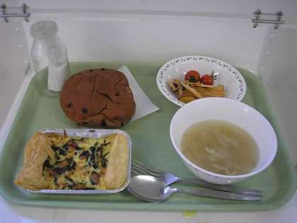 ジュリアンスープ、  パン(チョコチップパン)、  牛乳