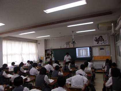 昨日、3年4組で日本語の研究授業がおこなわれました。障子を含めた建具を通して日本の文化について学びました。授業の最初は生徒たちにとって遠い存在であった障子が映像や授業を通して少し身近なものになったようです。「将来、自分の家を建てることになったら、障子のある居間を作ろうと思いますか。」という問いかけにほぼ全員の生徒が「はい」と答えるほどに障子の優れた機能や良さが生徒に伝わったようです。