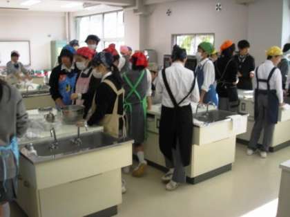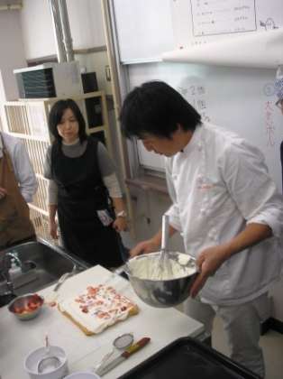 昨日と本日の二日間でプラチノのオーナーシェフの田勢さん夫婦を招き、二年生全クラスがお菓子作りの実習を行いました。はたして自分達ははうまくできるのかという不安もあったようですが、田勢さんの丁寧な指導のもと、全クラスが無事に美味しいケーキを焼くことができました。放課後には職員にも配られ、生徒たちの作品をありがたくいただくことになりました。田勢さん夫妻、お忙しい中ありがとうございました。