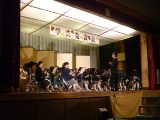 10/25(土)秋晴れの下、平成26年度学芸発表会が行われました。午前中は舞台発表の部です。オープニングを飾るのは「ブラスバンド部」の演奏です。3年生にとっては最後の舞台発表。ところどころソロパートを入れながら「天体観測」他アンコール曲1曲を披露しました。