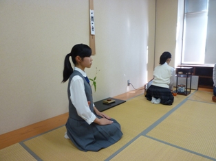 今年度の学芸発表会では、茶道部がお茶会を開き、お手前を披露してくれました。